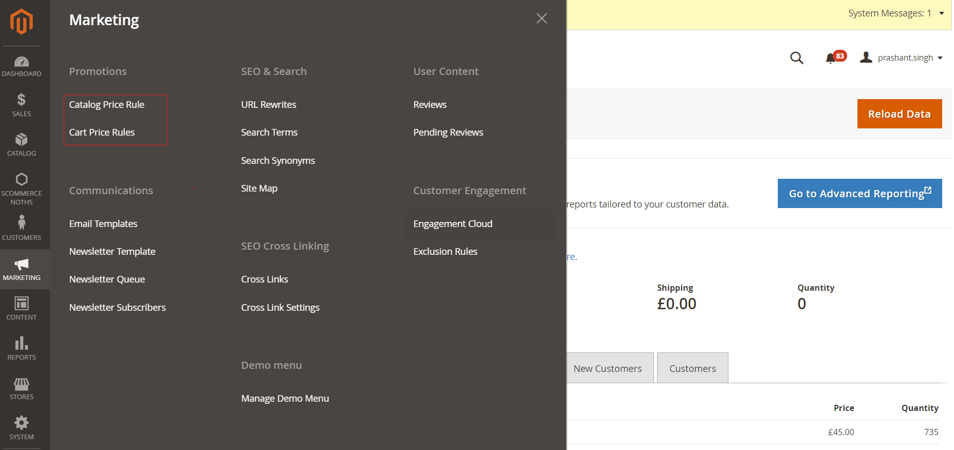 - Navigate to Admin > Marketing > Cart Price Rules, and create a new discount rule.