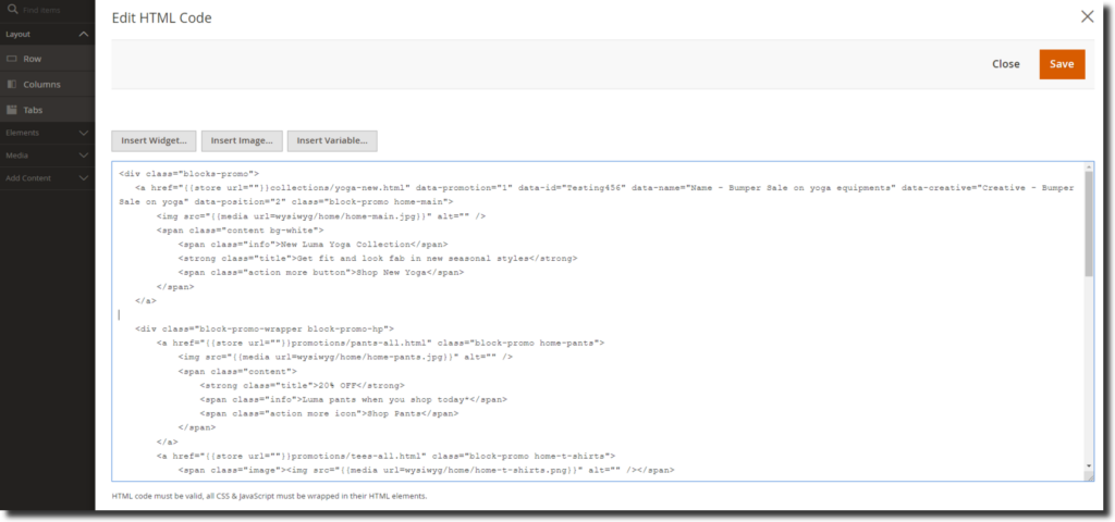 Step 2:- Edit the HTML code in the page builder and click on the insert widget on the page where you want to add the slider.