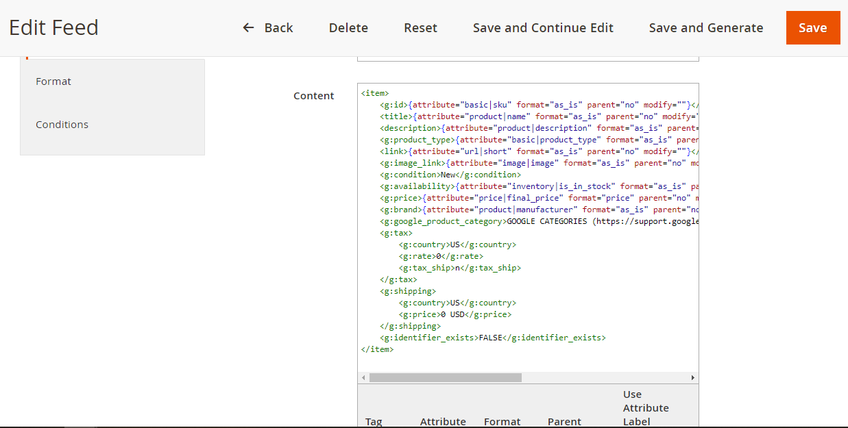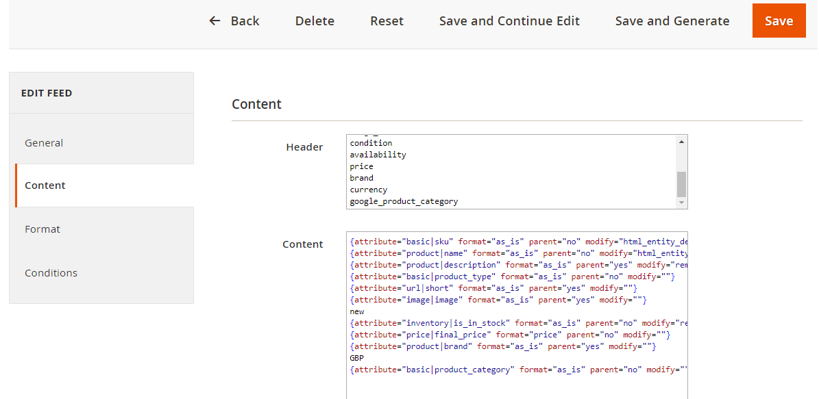 Magento 2 Feed format settings