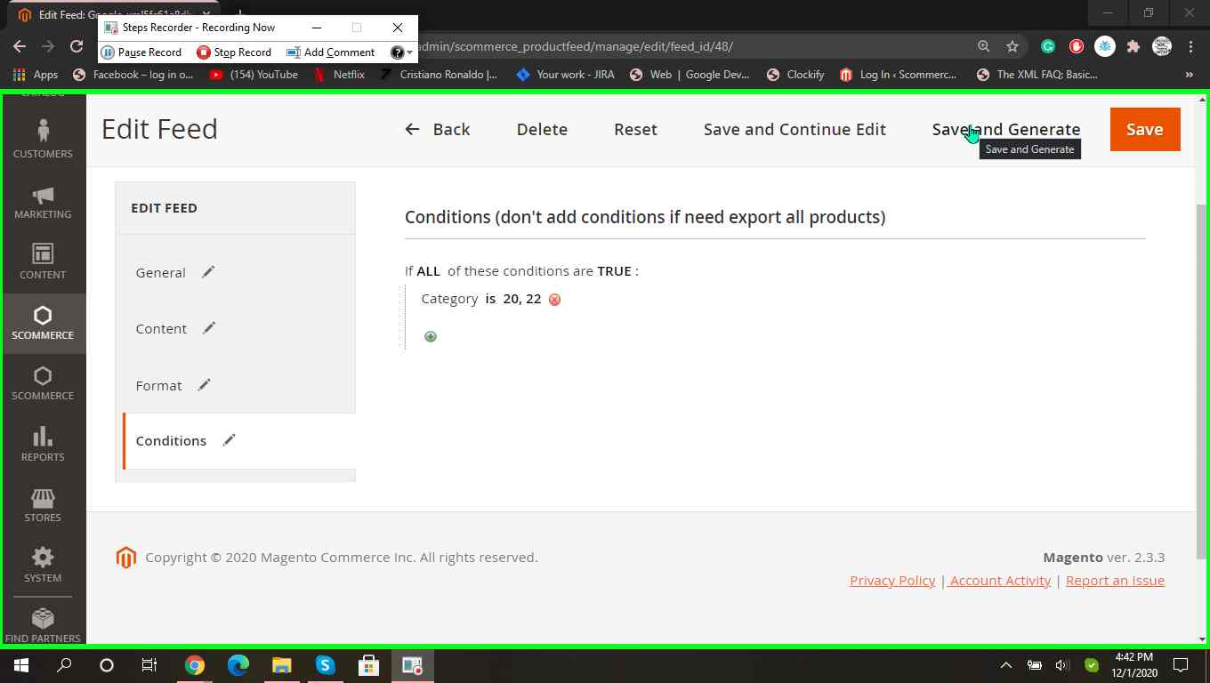 Magento feed save and generate