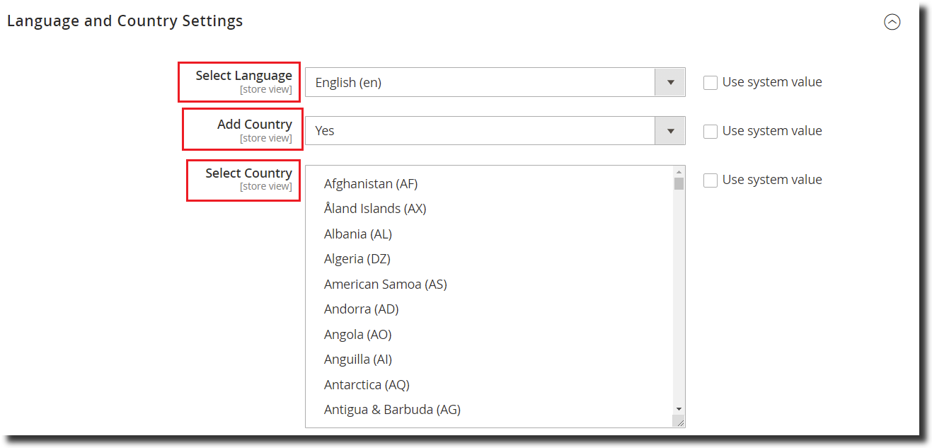 Step 5:- Move on to Language and Country Settings. Here, select language and country for each store view. For eg:- for your France store view select language as Fr and country as France then Hreflang attribute will be added as “fr-FR”.