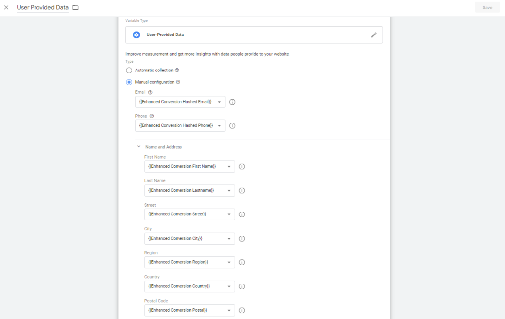 - Variable Name- Enhanced Conversion Postal