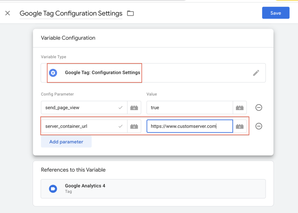 server_container_url - Value: Set to the server container URL of your Tag Manager server container.