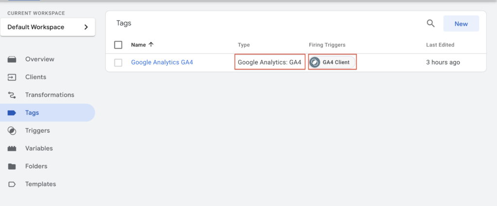 - Click new and select “Google Analytics GA4” as tag type