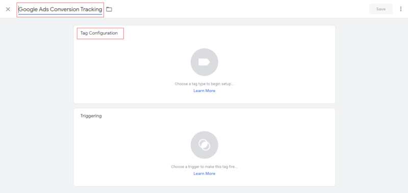 Step 2:- Enter the Tag Name as “Google Ads Conversion Tracking” and click on Tag Configuration.