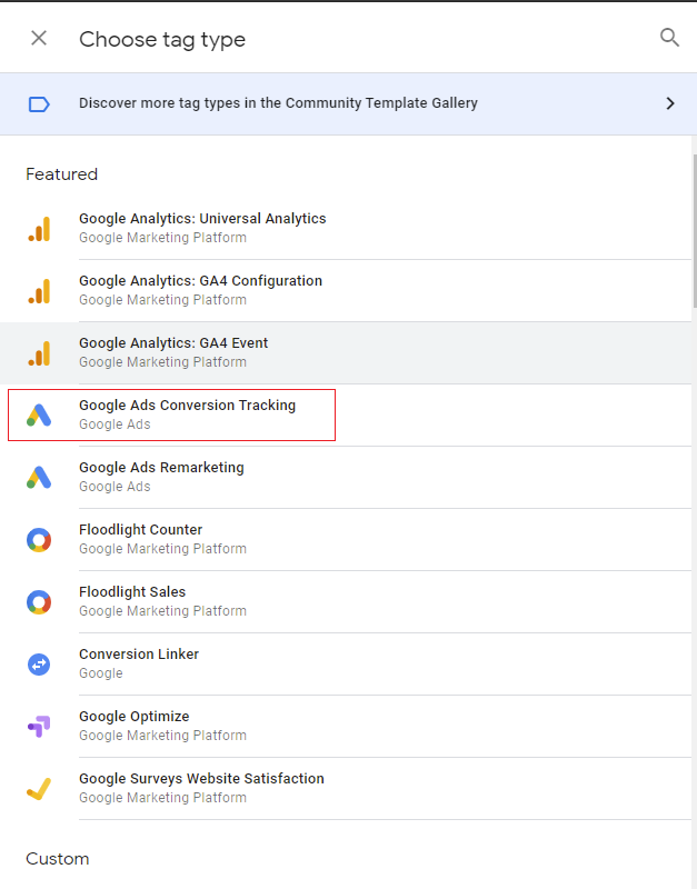 Please follow the steps below to create Google Ads Conversion Tracking tag in GTM:-