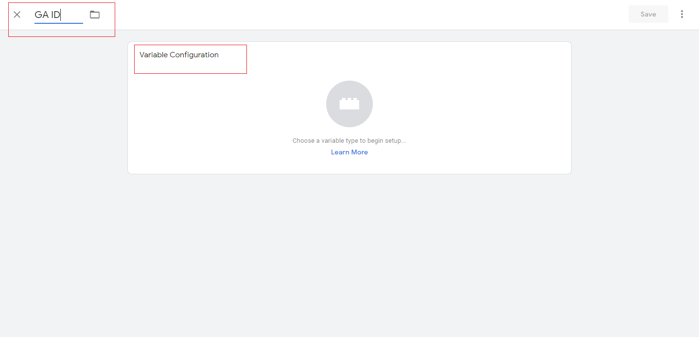 Step 1:- From the left navigation select Variables. Click on New to create a new variable. Enter the variable name as “GA ID”.