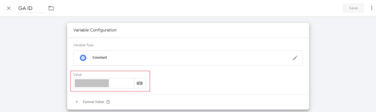 Step 4:- Lastly click on save and your GA ID variable is created.