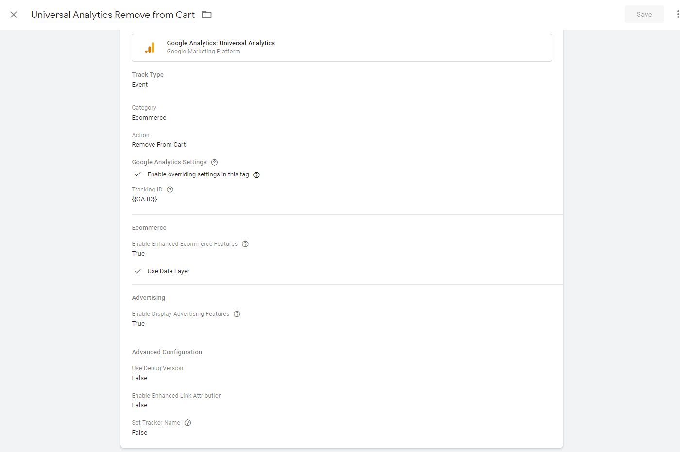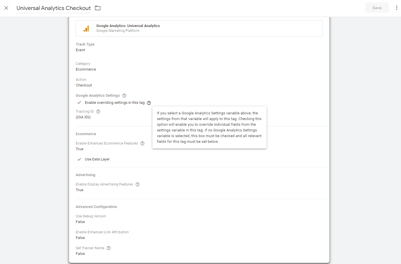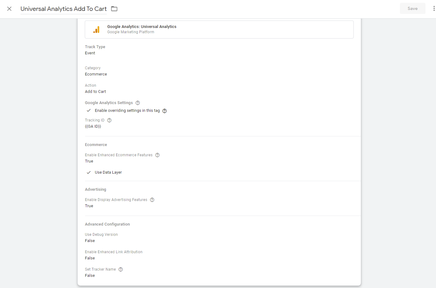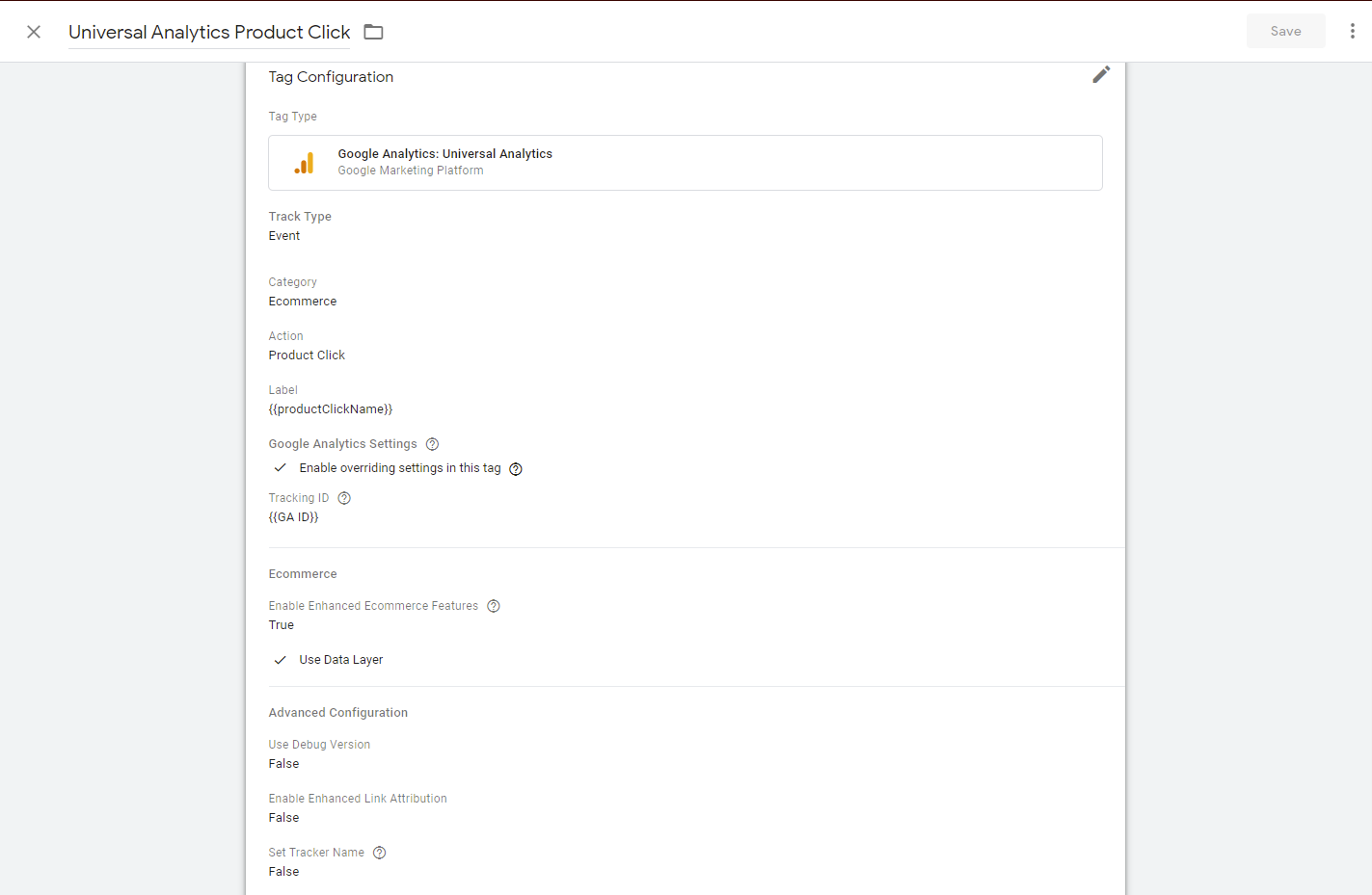 Step 6:- Lastly scroll down and set Use Debug Version “True”, Enable Enhanced Link Attribution “False” and Set Tracker Name “False”. Select the Trigger GTM Ready that we created in the previous step. Finally, click on Save and you are done.