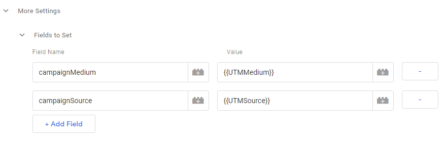 Field Name:- campaignMedium Value:- {{UTMMedium}}