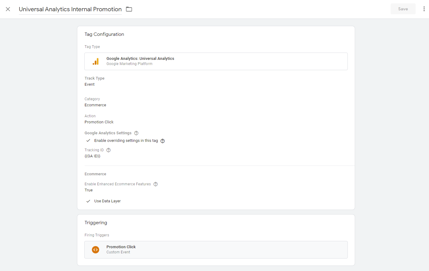 After implementing the data layer given above on your store follow the below steps to set up Universal Analytics(UA) Internal Promotion tag in GTM.