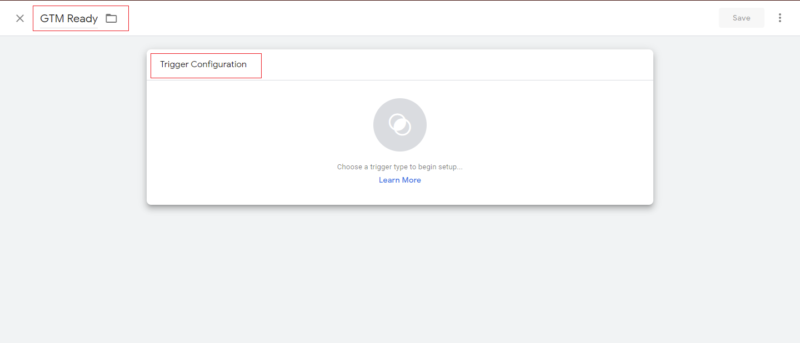 Step 1:- From the left navigation select Triggers. Click on New to create a new trigger. Enter the Trigger name as “GTM Ready”.