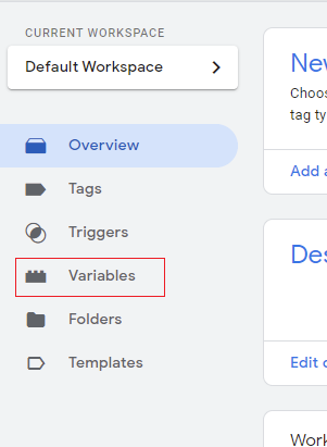 Step 1:- Go to your GTM container and from the left navigation menu choose Variables.