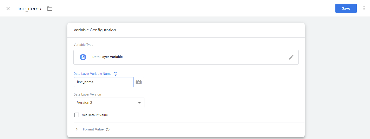 We only need one variable to fetch the line_items for this tag. Please use the information given below to create this variable:-