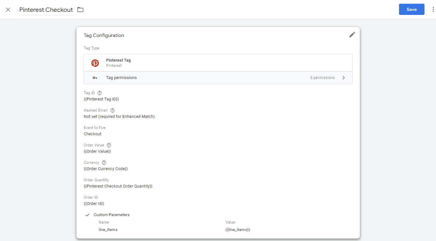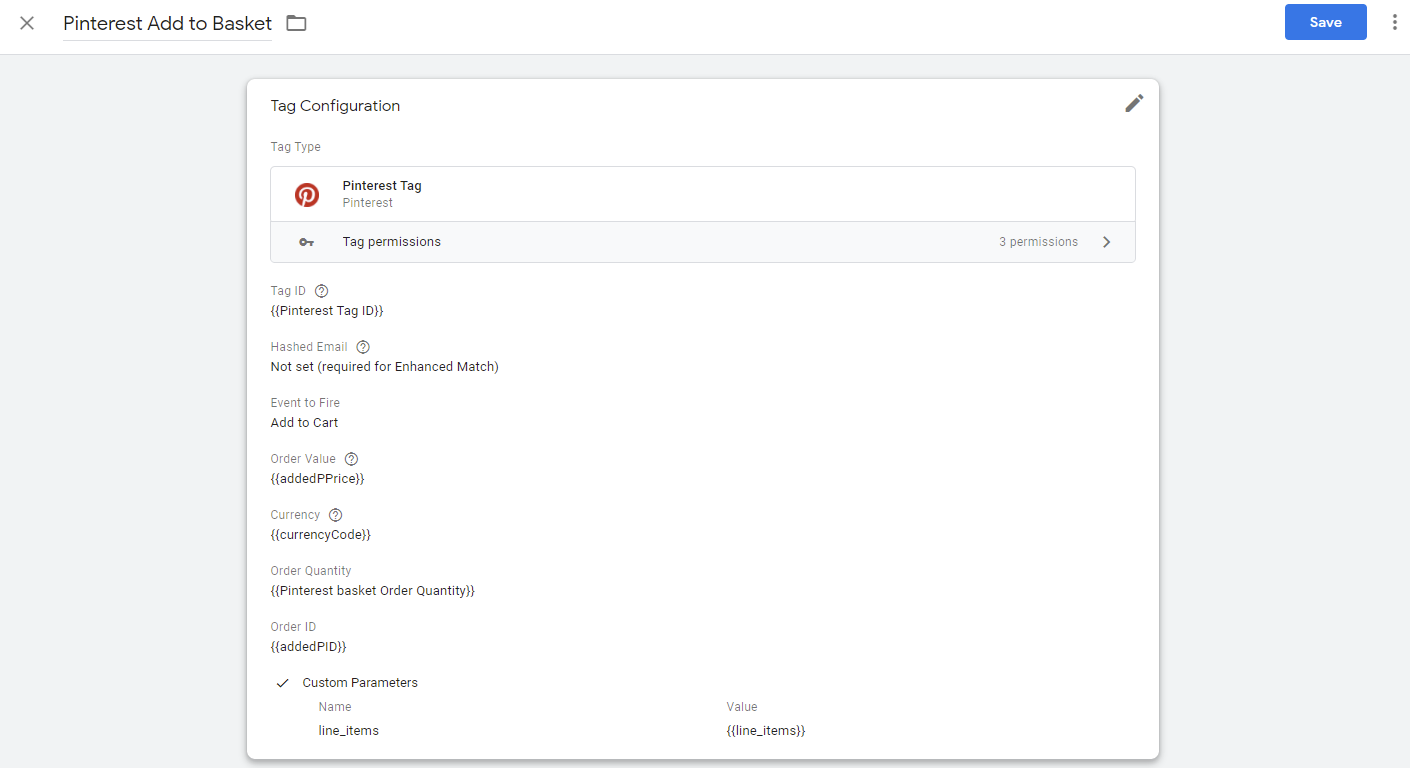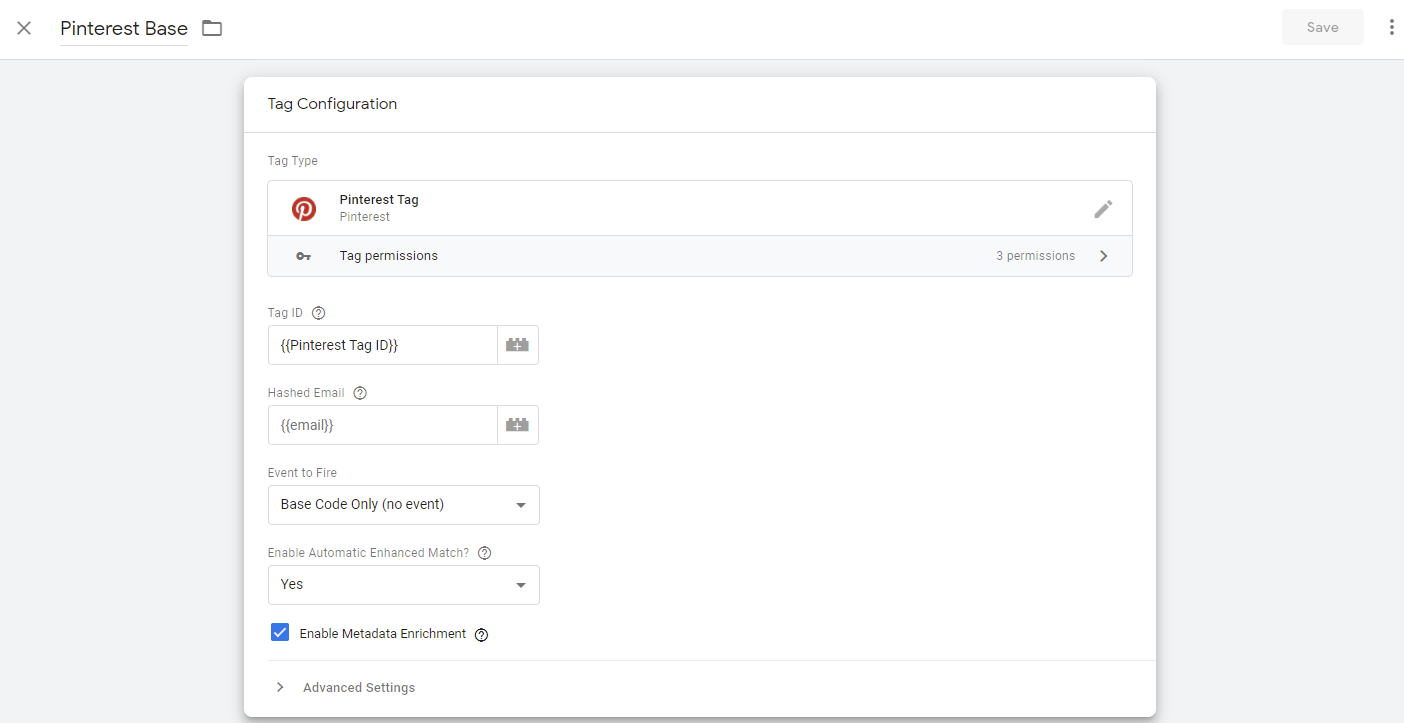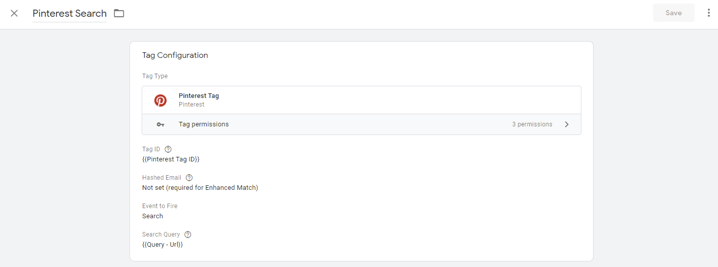 Triggering:- Select the Pinterest GTM Ready trigger that we created in the previous step.