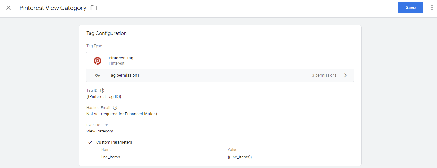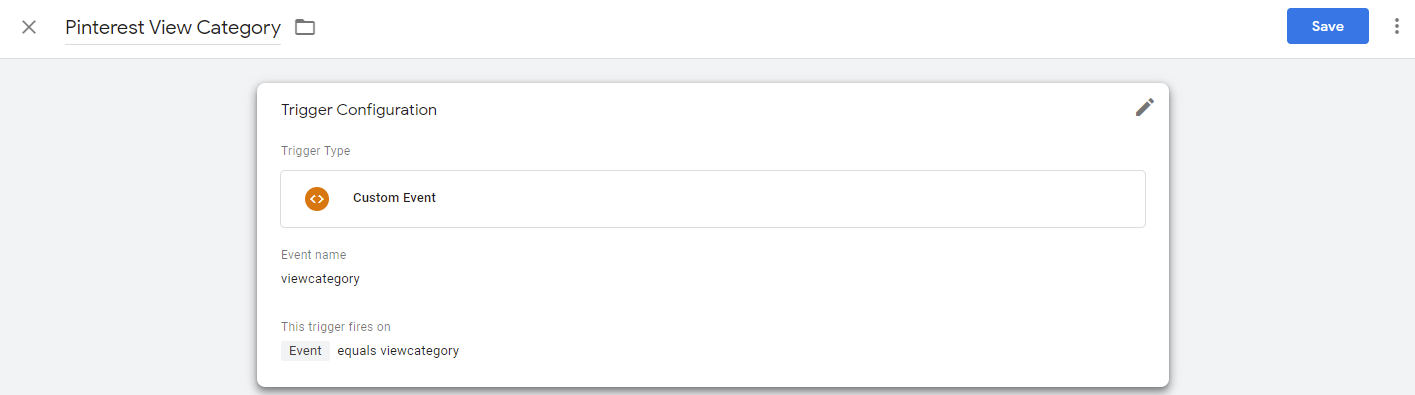 Triggering:- Select the Pinterest View Category trigger that we created in the previous step.