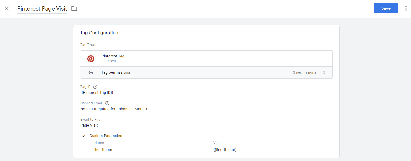 Step 5:- In Tag Id enter the Pinterest Tag ID or you can also store this ID in a variable with type constant. Simply enter the variable name here.