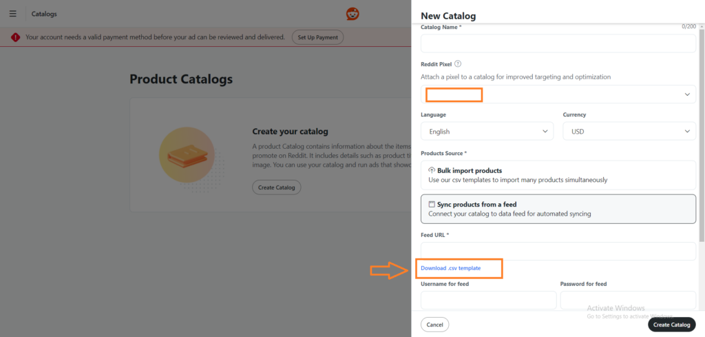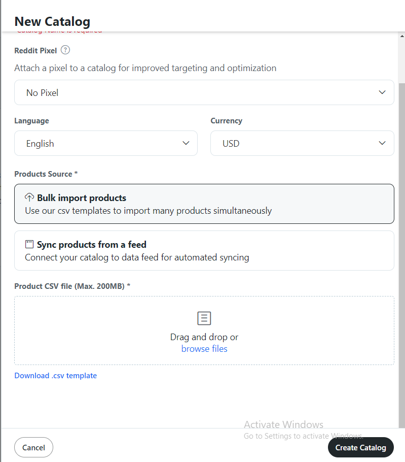 • Once you’ve created an account, you can upload your product feed to the Reddit Ads platform.