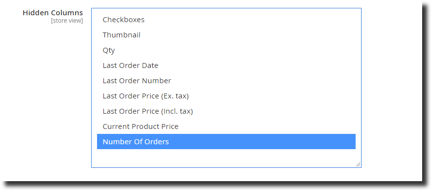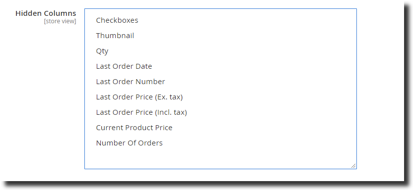 The administrators of the store have complete control over what rows they want to include in the previous products grid. If they wish they can simply hide certain columns from the grid directly from the configuration. Simply follow the steps below to hide a certain column from the grid:-