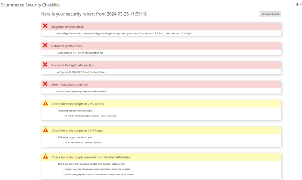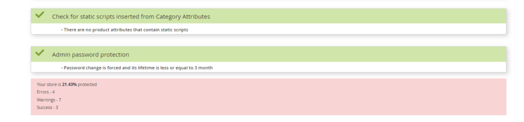 - Each of the checks contains detailed information and recommendations for securing your Magento 2 store.
