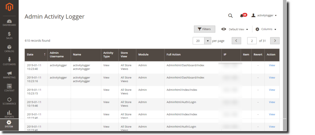 Similarly, the Admin Activity/Action Grid offers comprehensive oversight of every action performed within the admin panel. From user logins to configuration changes and product modifications, this grid provides a detailed log of all administrative activities. By reviewing this information regularly, administrators can spot anomalous behavior, such as unauthorized access attempts or unusual configuration changes, and mitigate potential security threats before they escalate.