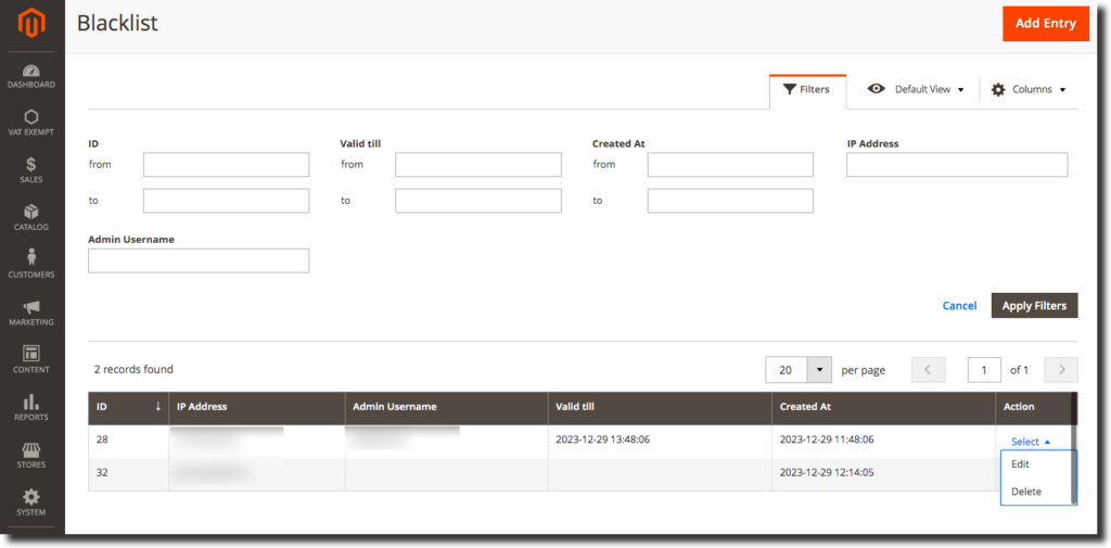 - IP Whitelisting and Blacklisting: Another key feature offered by Advanced Admin Login Security is IP whitelisting and blacklisting. This functionality empowers administrators to specify trusted IP addresses from which access to the admin panel is permitted. By configuring IP whitelisting rules, merchants can effectively restrict access to the admin area to only authorized locations, enhancing the overall security posture of their Magento 2 store. By blacklisting IPs certain users/malicious threats are denied access to the admin panel.