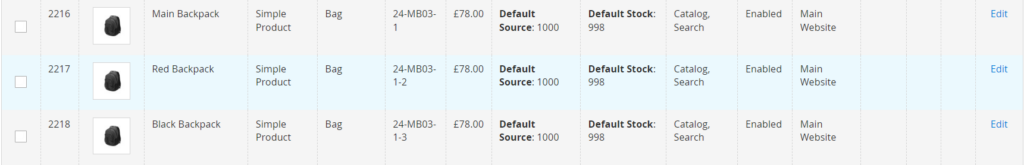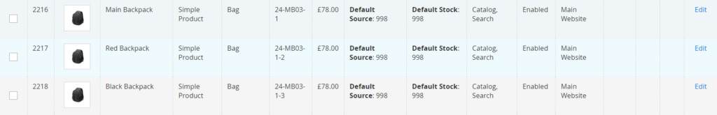 Step 5:- To test our setup, let us place an order with the linked product i.e 24-MB03-1-2 with 1 qty and 24-MB03-1-3 with 1 qty. As we placed the order with 2 qty in total we can see in the below image that the default stock has reduced by 2 for all three products:-