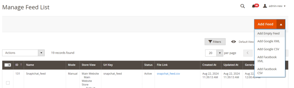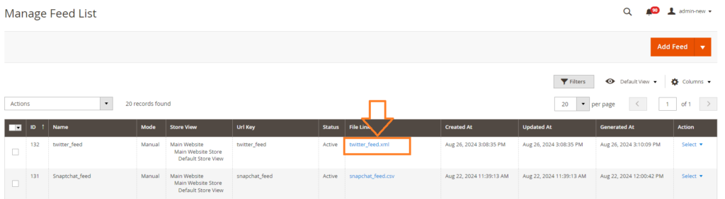 Once you’ve configured the feed and mapped attributes, you can manually generate the feed file from the grid. If you’ve chosen automatic execution, the feed will be generated automatically through cron. The Scommerce extension allows you to schedule automatic feed generation, ensuring your Twitter(X) Product Feed remains up-to-date. Click on the link to download the generated feed.