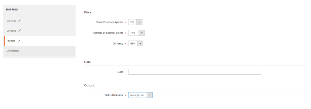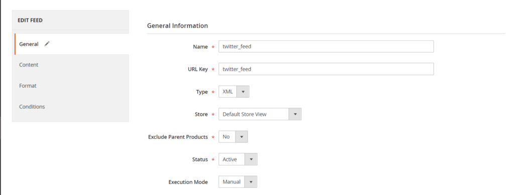 • Execution Mode: Select either automatic or manual updates. If you choose manual, you’ll need to generate the feed manually from the grid
