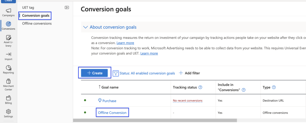 Before you can import offline conversions, ensure that conversion tracking is set up in your Microsoft Ads account.