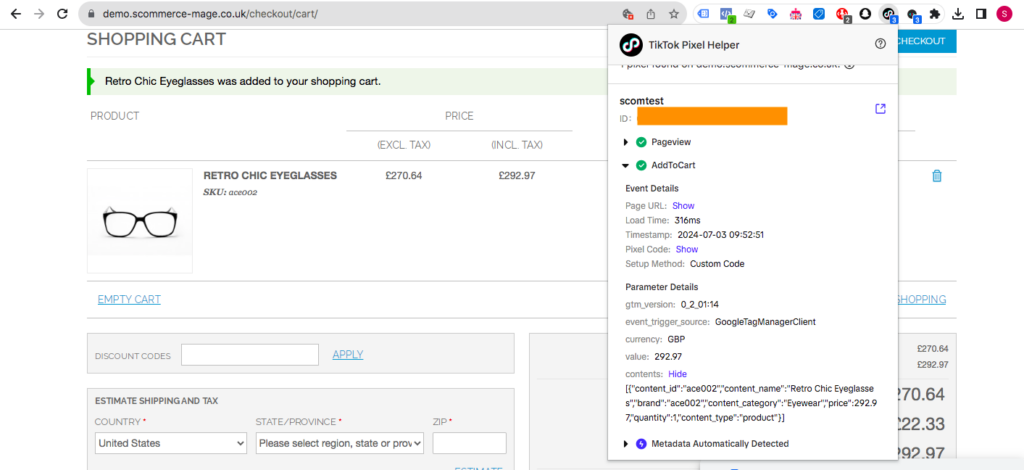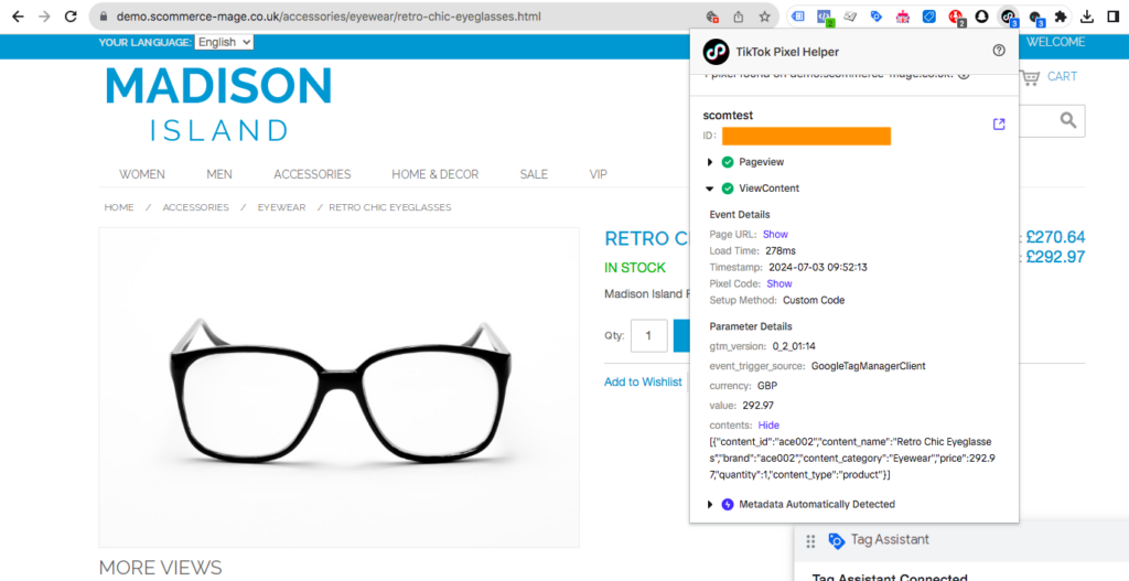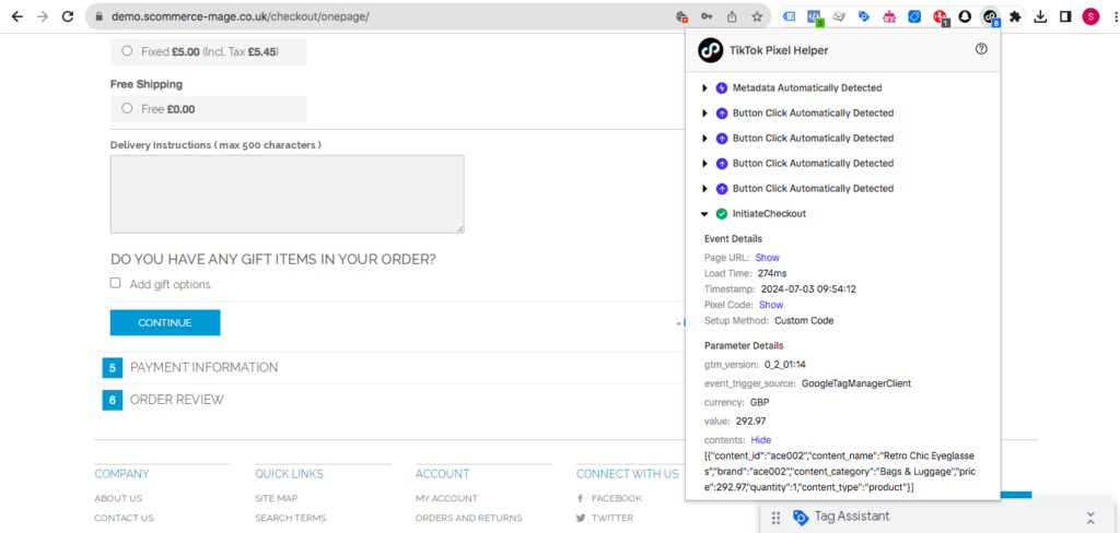 Testing:- Test the tag using the Tiktok Pixel Helper browser extension