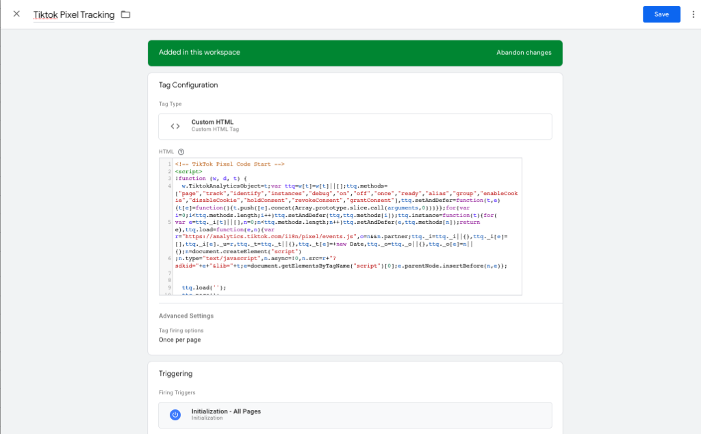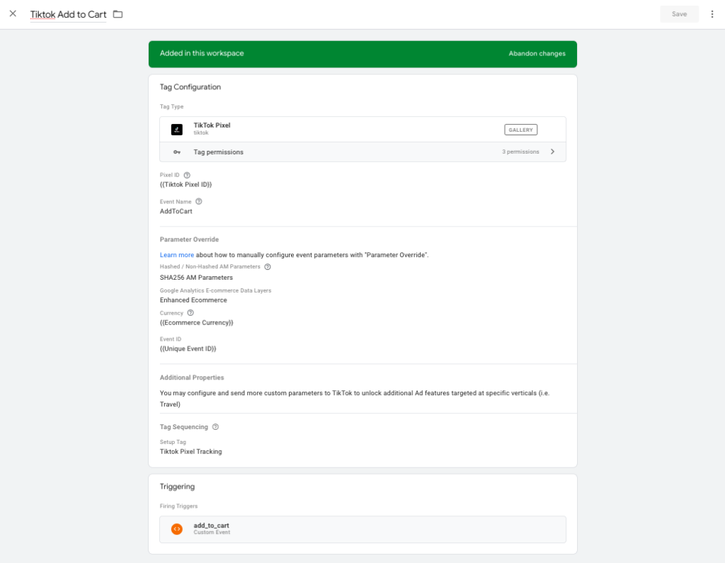 - Check “Don’t fire Tiktok Add to Cart if Tiktok Pixel Tracking fails or is paused”