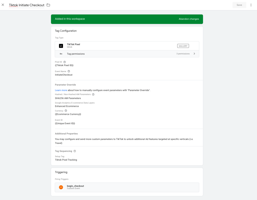 - Check “Fire a tag before Tiktok Initiate Checkout fires”
