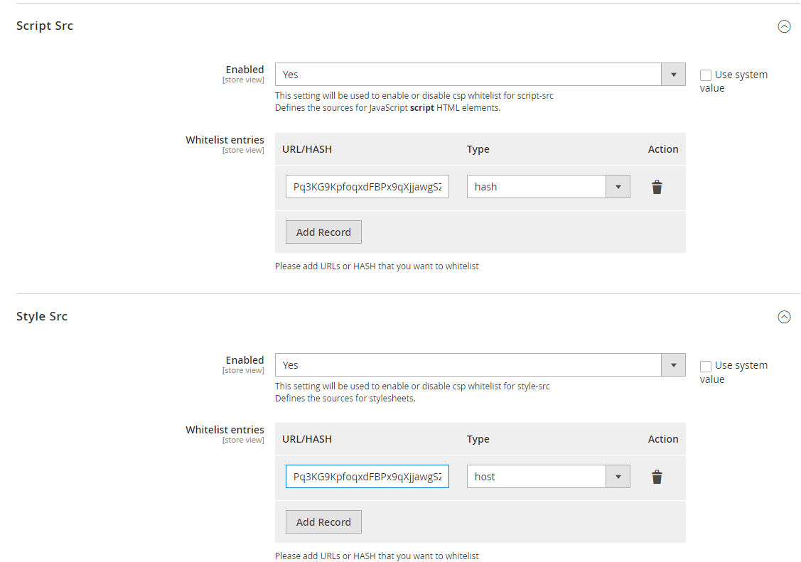- Add the generated hash directly to our extension under style-src or script-src section by selecting type as “hash”