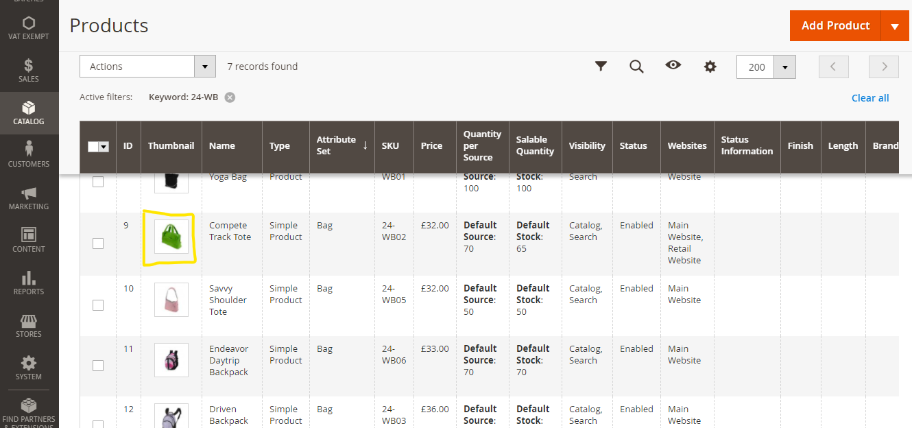 Step 3:- Go to Catalog>Products and select the product that you want to create a unique URL for.