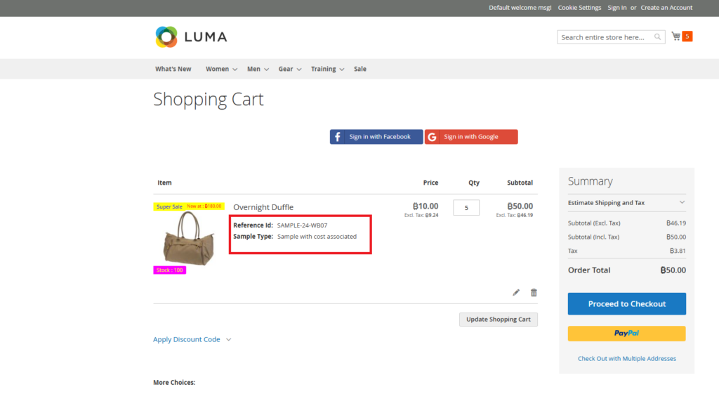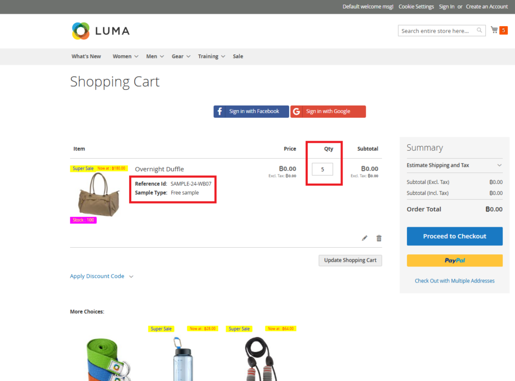 TESTCODE, it will discount full-priced items in the cart but ignore the sample products, ensuring your sample margins remain protected.