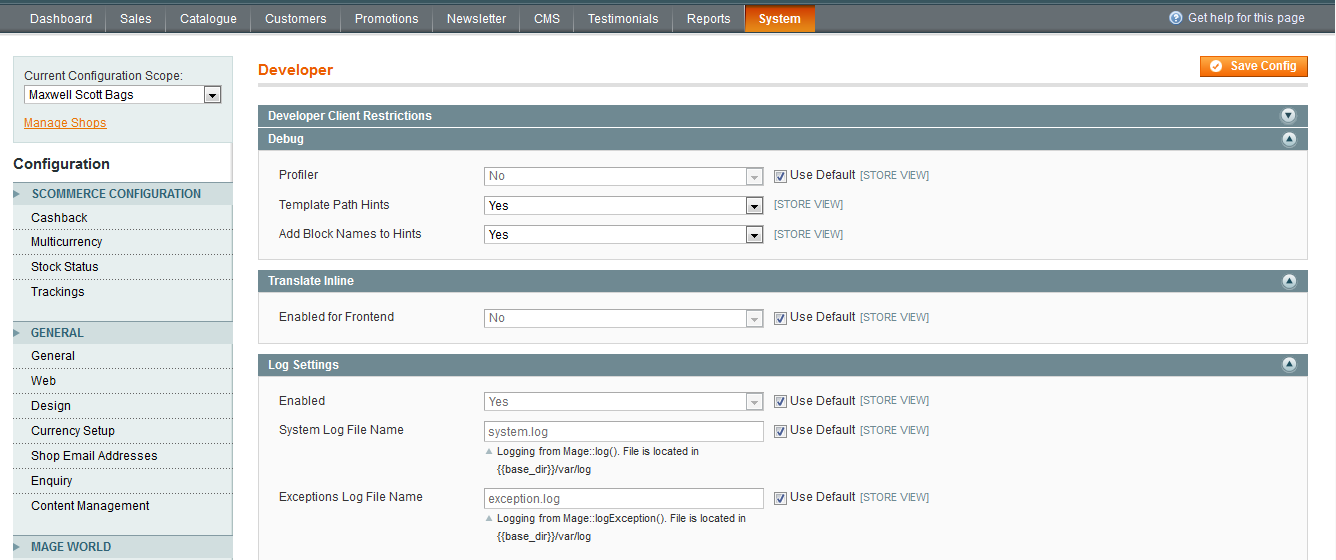 In the above screenshot, you can see the template path as well as block names which can again be enabled using the system configuration from