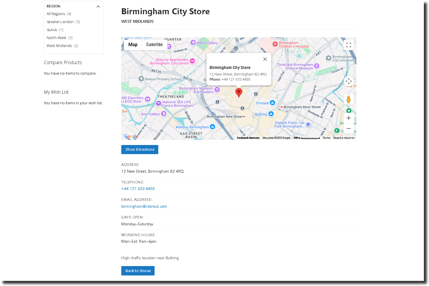 Gone are the days of customers struggling to find your stores. With interactive maps, detailed store profiles, and smart region-based filtering, your customers can quickly locate the information they need, fostering trust and encouraging in-store visits. For store owners, the intuitive backend interface ensures that managing your growing network of locations is as simple as managing your products.