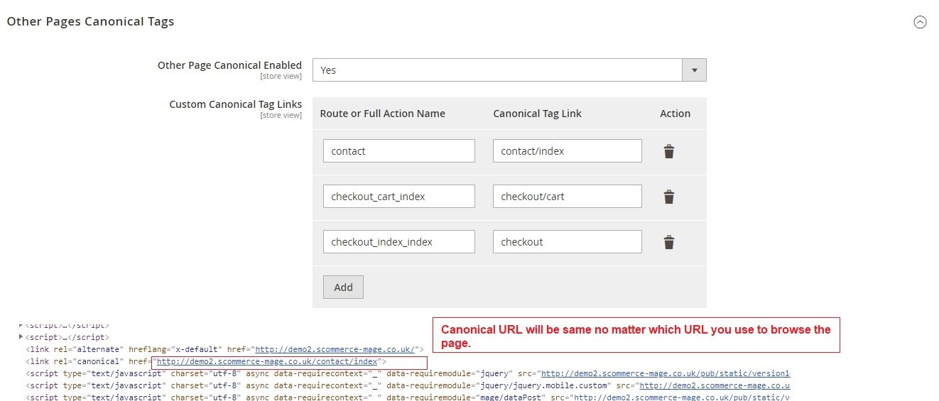 However, aside from Category, Product and CMS pages it will force override canonical tags on all other pages as per the configuration